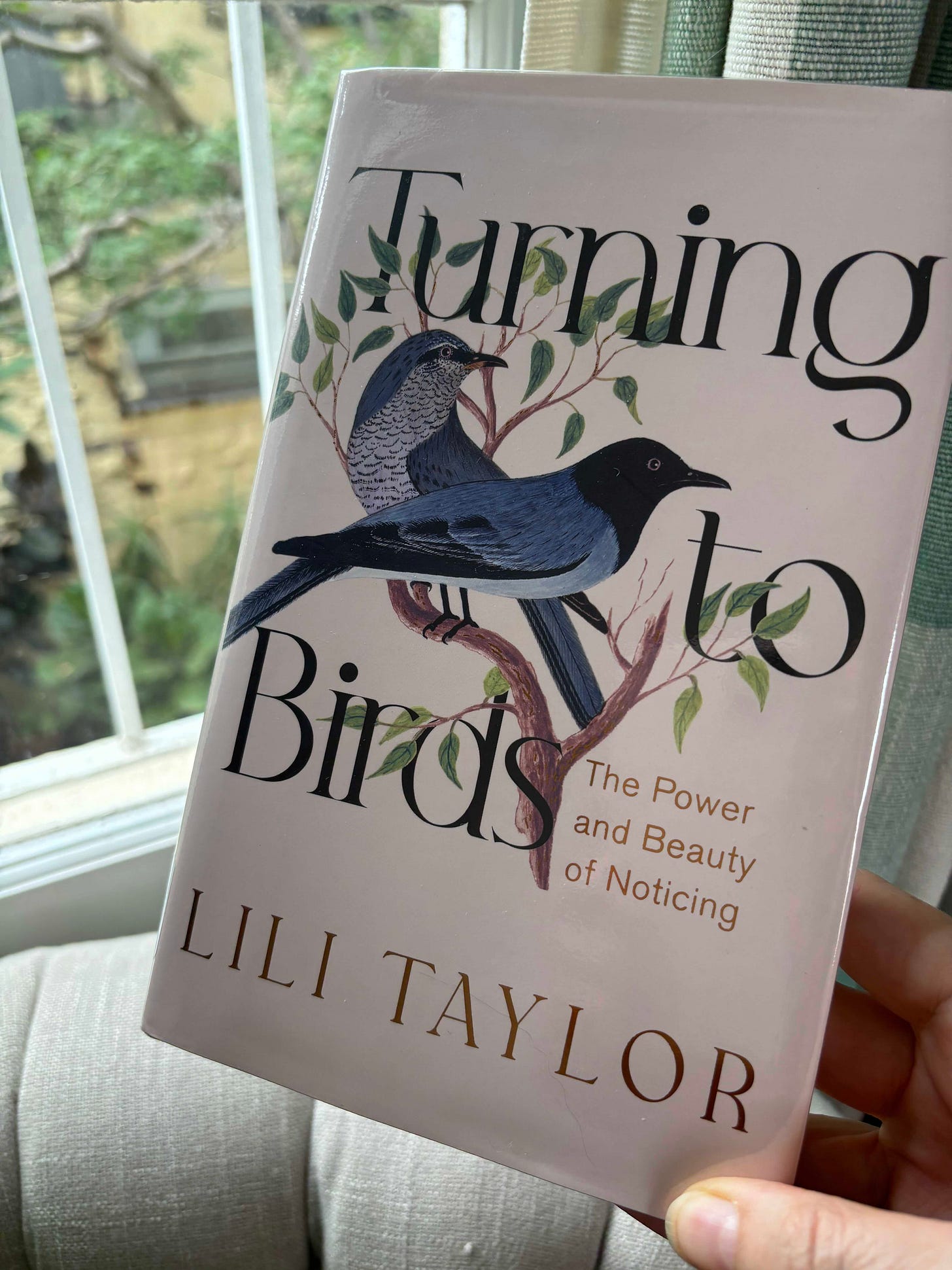 I’m reading a lovely book, Turning to Birds, The Power & Beauty of Noticing by Lili Taylor, a NY-based theatre actor. Spotted it in my local library, knew I would relate, thought you might too.